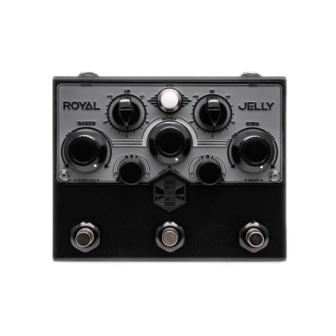 The Royal Jelly is an overdrive/fuzz blender like no other pedal. It can cover any ground from overdrive to fuzz, running two circuits in parallel and giving you the possibility of blending it or having them separately.