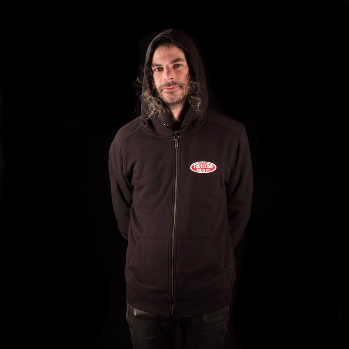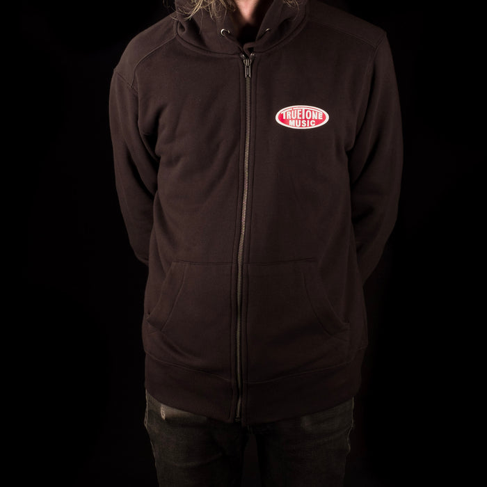 Truetone Music Classic Zip Up Hoodie Black with White & Red Logo