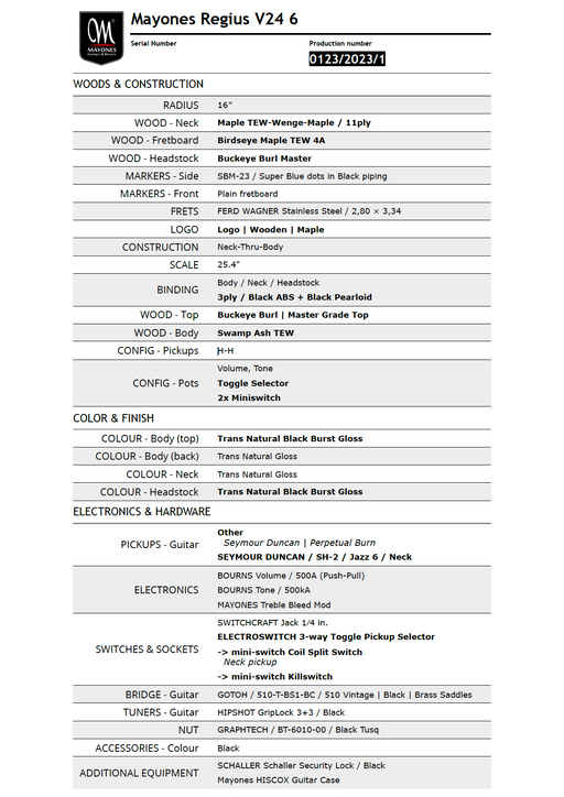 MayonesOriginal price $ 7,099.99Original price $ 7,099.99 - Original price $ 7,099.99Original price $ 7,099.99Current price $ 5,999.99$ 5,999.99 - $ 5,999.99Current price $ 5,999.99| /Powerful neck-thru-body construction and optimal sound make the Mayone Regius a highly desirable stringed instrument. Hundreds of custom options ...