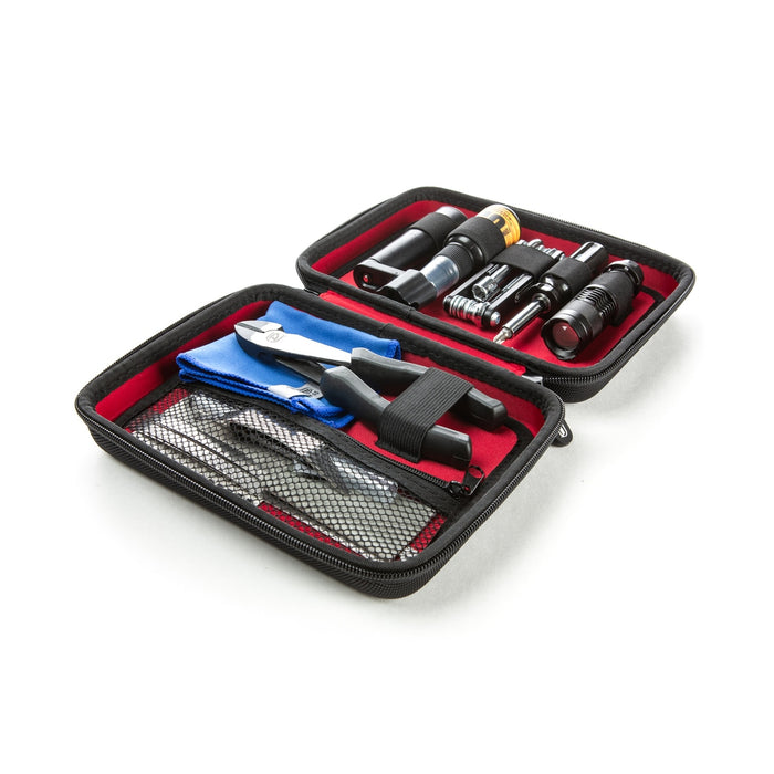 This kit has everything you need to keep your guitar in top playing shape, whether you’re doing a quick string change or a complete setup: a Gig Light, Micro Fret Cloth, Fret Collars, String Cutters, Screwdriver, Formula 65 Cleaner-Polish, Superlube® Gel Pen, String Action Gauge, Microfiber Polish Cloth, Multi-Tool, and Stringwinder.