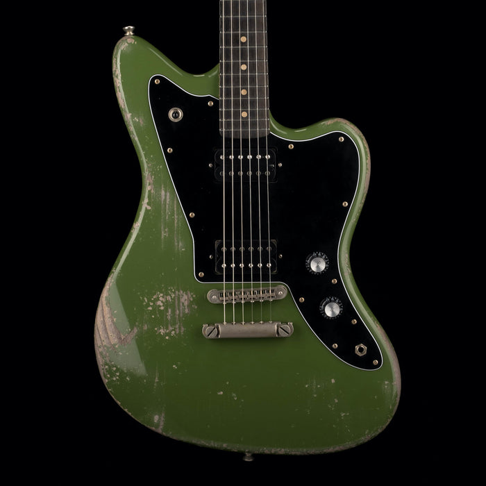 The Fano Alt de Facto JM6 is a vintage-inspired electric guitar that combines the best features of classic models with modern craftsmanship and custom pickups. Each JM6 is hand-built by one builder in Scottsdale, AZ, using premium tone woods and aged hardware. This one was spec'ed out together by the head of Truetone and the head of Fano, collaborating to create some guitars that hadn't been done before. This heavily distressed JM6 with dual humbuckers, in an Olive finish, is a one of a kind instrument and the only one out there right now.