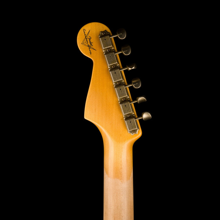 Other features include a 5-way switch, 3-ply mint green pickguard, Custom Shop vintage synchronized tremolo, vintage-style tuning machines, bone nut, and a wing string tree with tall metal spacerr.