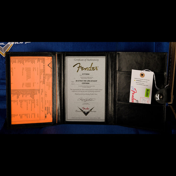 The guitar comes complete with a deluxe hardshell case, strap and certificate of authenticity. For anyone looking for the authentic sound and look of a '59 Strat, with a touch of modern playability, in a super cool and rarely seen color, this is it.