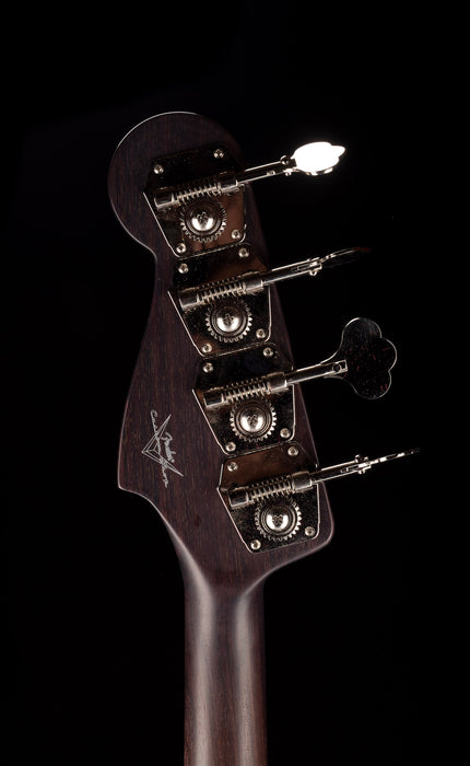 The 1964 Fender Jazz Bass is appreciated for its warm, engaging swing in the neck position and its throaty, present definition in the bridge position. This faithful replication of the 1964 Jazz, with a few tweaks, captures both of those voices perfectly. The main feature that makes it unique is an all rosewood neck, which until recently was only available on Masterbuilt instruments. We chose to not have the normal gloss finish applied, giving it a raw, natural feel. This neck has instantly become a favorite amongst all of the basses here.