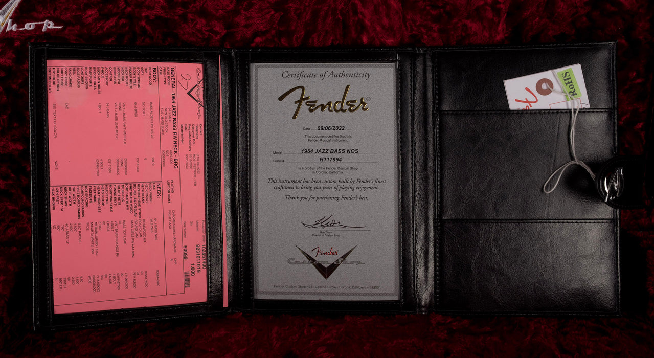 Fender Custom Shop 1964 Jazz Bass NOS Rosewood Neck British Racing Green