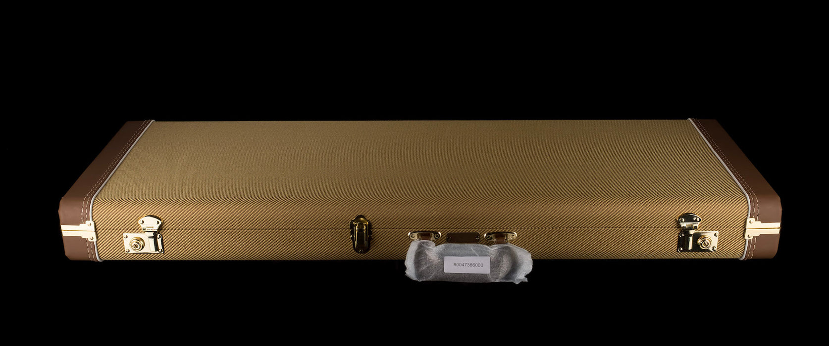 This guitar has all of the mojo of a vintage instrument, with a few twists and modernizations for playability. And, this one is super light, coming in at just 6.9 lbs. It comes with a tweed hardshell case, strap and Certificate of Authenticity.