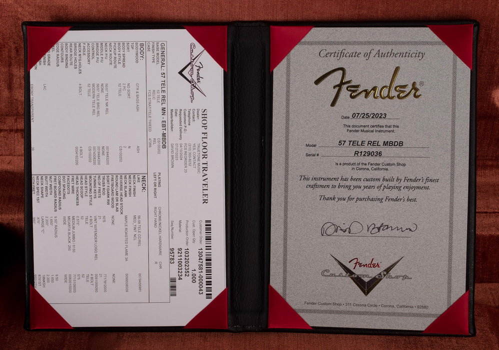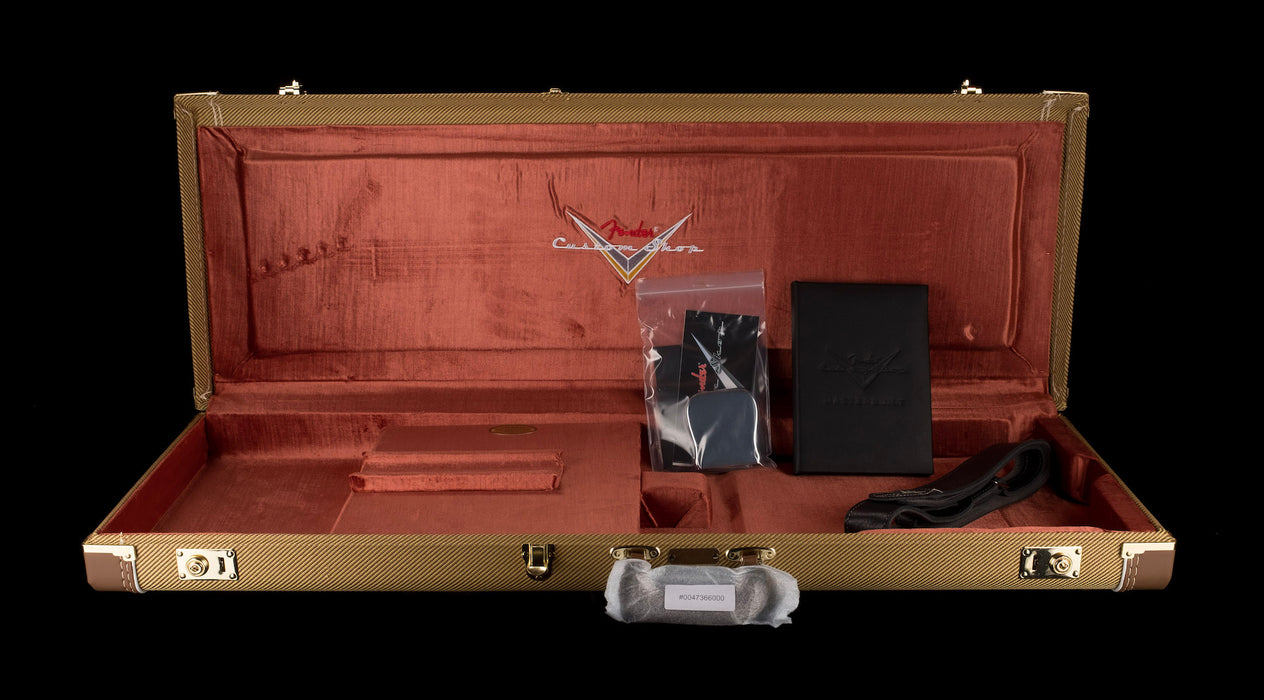 Truetone Music is proud to have a long and close relationship with Fender, especially with the Custom Shop. Every so often, we make a pilgrimage there to sit down with Masterbuilders to cook up a batch of amazing guitars. Sometimes we go for vintage-styled recreations, sometimes we go for modernized tweaks. Sometimes it's a classic color, sometimes it's a totally new color or even reclaimed wood. No matter what, they always knock it out of the park!This very cool '57 Tele is a result of this partnership. When a new Masterbuilder is announced, we jump on it and immediately reach out to start working together. In this case, it was easy - the newest Masterbuilder was our old friend David Brown, who had been at Fender previously. It was a lot of fun to reconnect and start dreaming up a batch of amazing guitars. We specifically asked him what he was interested in doing and worked on the design together. That was the genesis of this unbelievably awesome guitar.