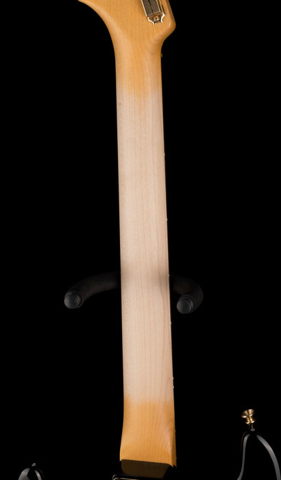 One of the first things you'll notice, from the title alone, is that this guitar has a Brazilian Rosewood fretboard. Rarely seen and highly desirable, this upgrade is only available through the Custom Shop on Masterbuilt instruments. David picked out a beautiful piece for this one. The neck itself feels amazing, especially with the finish worn off the back. That's a custom touch that we asked for, to give it a broken in feel without the look of a Relic. It has all of the feel & comfort you would expect from a masterbuilt instrument. David really does amazing work with the fine details on a neck, from the perfectly seated frets, rolled edges and overall playability. We went period correct with the 60's Style C neck carve, which has become the most popular for Custom Shop guitars over the years It has a 9.5" radius and Medium Jumbo (6150) frets, making it easy to play, even up high on the neck when bending notes.
