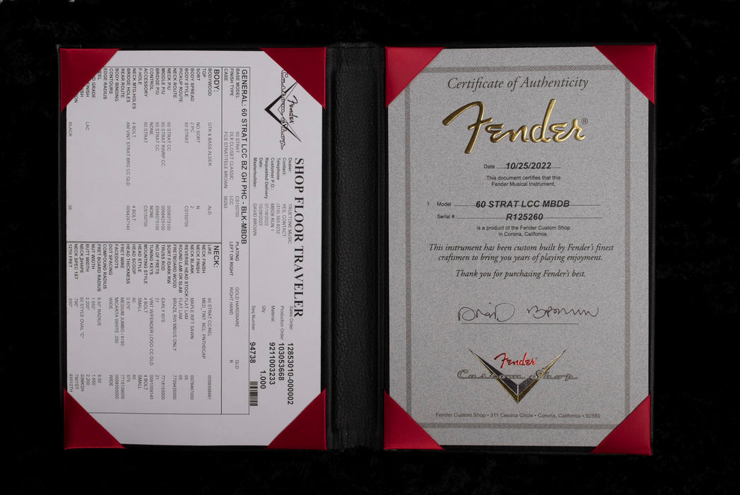 Truetone Music is proud to have a long and close relationship with Fender, especially with the Custom Shop. Every so often, we make a pilgrimage there to sit down with Masterbuilders to cook up a batch of amazing guitars. Sometimes we go for vintage-styled recreations, sometimes we go for modernized tweaks. Sometimes it's a classic color, sometimes it's a totally new color or even reclaimed wood. No matter what, they always knock it out of the park!This exquisite 1960 Stratocaster is a result of this partnership. When a new Masterbuilder is announced, we jump on it and immediately reach out to start working together. In this case, it was easy - the newest Masterbuilder was our old friend David Brown, who had been at Fender previously. It was a lot of fun to reconnect and start dreaming up a batch of amazing guitars. We specifically asked him what he was interested in doing and worked on the design together. That was the genesis of this unbelievably awesome guitar.