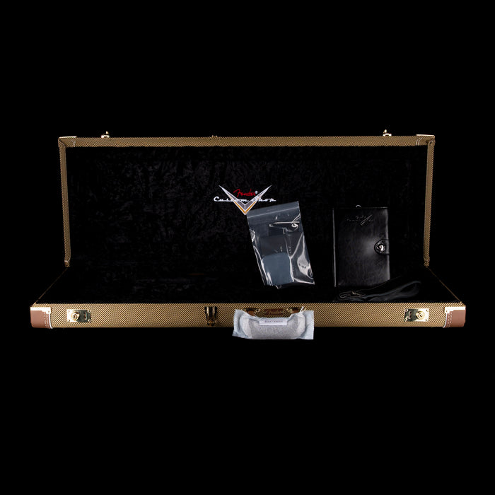 The guitars comes with the certificate of authenticity, paperwork, bridge cover, strap and Custom Shop tweed case. Visit Truetone Music to experience it yourself, or order right here to get this guitar shipped to your home.