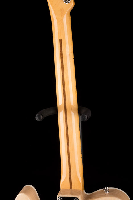 The solid & sturdy maple neck is a force to be reckoned with - it's a Nocaster "U" profile, but with a somewhat slimmer feel than normal. It's still relatively thick while still being comfortable, and plays like a dream. If you're into super skinny necks this isn't the one for you, but if you like the feel of a vintage Tele with a good amount to grip, this simply can't be beat. The modern tweak is that it has a 9.5" radius with 6105 Narrow Tall frets. This is one of the most popular customizations, for good reason - it makes the guitar easier to play, especially for leads and expressive bending.