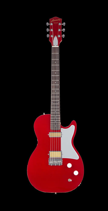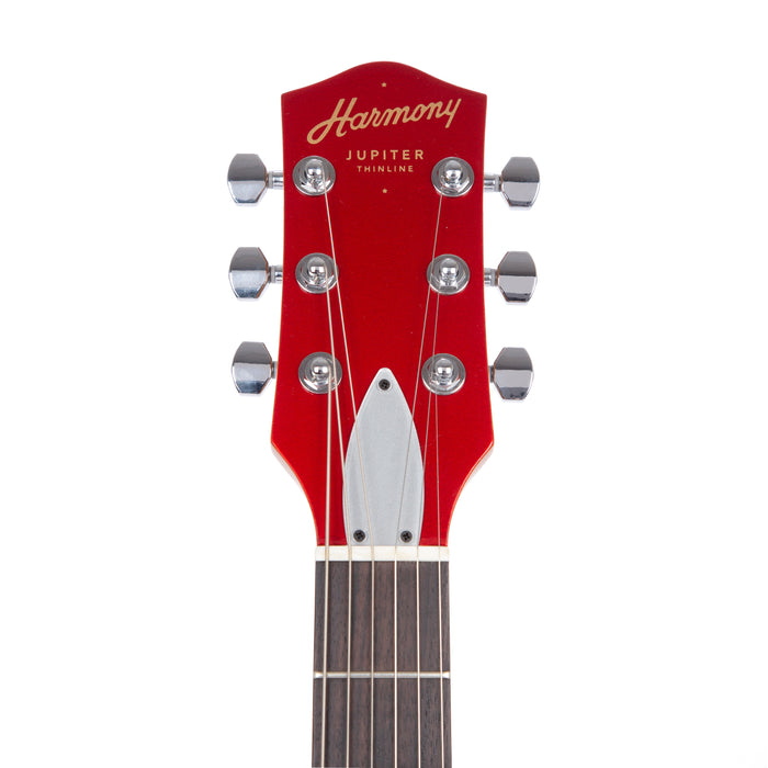The Jupiter Thinline electric guitar blends the classic Jupiter shape with a chambered mahogany body, a maple top and a smooth mahogany neck. These lightweight guitars feature a unique combination of Harmony pickups - a gold foil mini humbucker at the neck and a gold foil humbucker at the bridge. With the semi-hollow construction, the range offers the perfect blend of full-bodied resonance and controlled feedback, bringing another dimension to the Harmony sound.