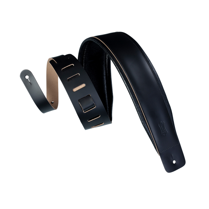 Levy's DM1PD-BLK 3" Wide Black Genuine Leather Guitar Strap
