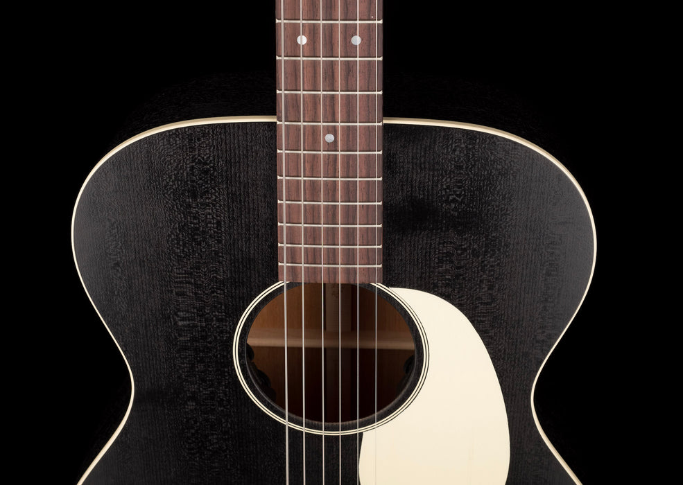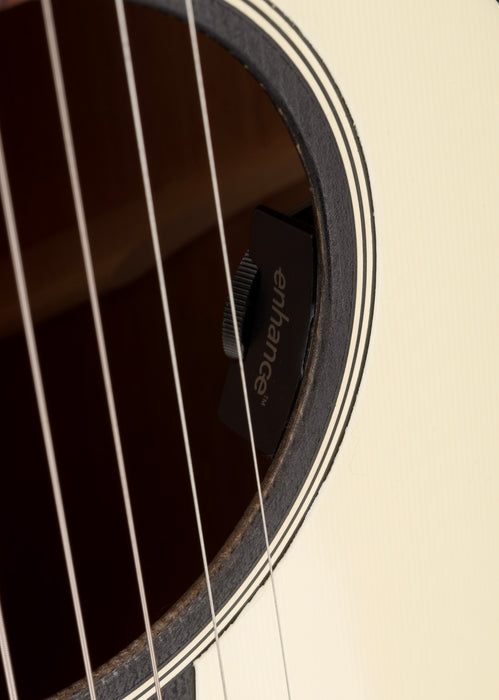 Skillfully crafted from a solid Sitka spruce top and mahogany back and sides with antique white binding, a modified low oval neck with a Performing Artist taper, and a rosewood fingerboard and bridge, this guitar produces beautiful dynamic tones that will please the most discerning musician.