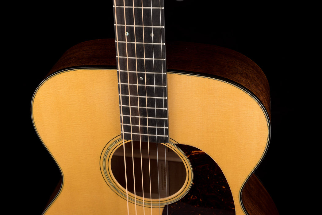 Featuring a comfortable Auditorium body style and a modern feel with excellent playability, the Martin 000-18 Standard offers a timeless combination of mahogany and spruce.  The well-balanced tone of the 000-18 is achieved through its Auditorium body style, providing exceptional projection and focus. Additionally, the body style produces a balanced tone, making it an ideal choice for studio recording.   With its modified low-oval neck profile and Performing Artist taper, this guitar is designed for comfort and ease of play. The shorter 24.9" scale length allows for easier reach for complex chord voicings, and the ebony fretboard adds to the smooth playing experience.