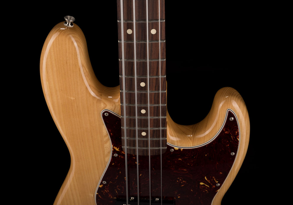 We just scored a great classic Jazz bass that has made its way back to Truetone a second time.  This is a Fender Special Run (limited edition) model from 2012, featuring an ash body in a Natural finish and an upgraded HiMass bridge.  Originally bought off our Used wall years ago, the owner barely ever used it and now we have the opportunity to sell it again.