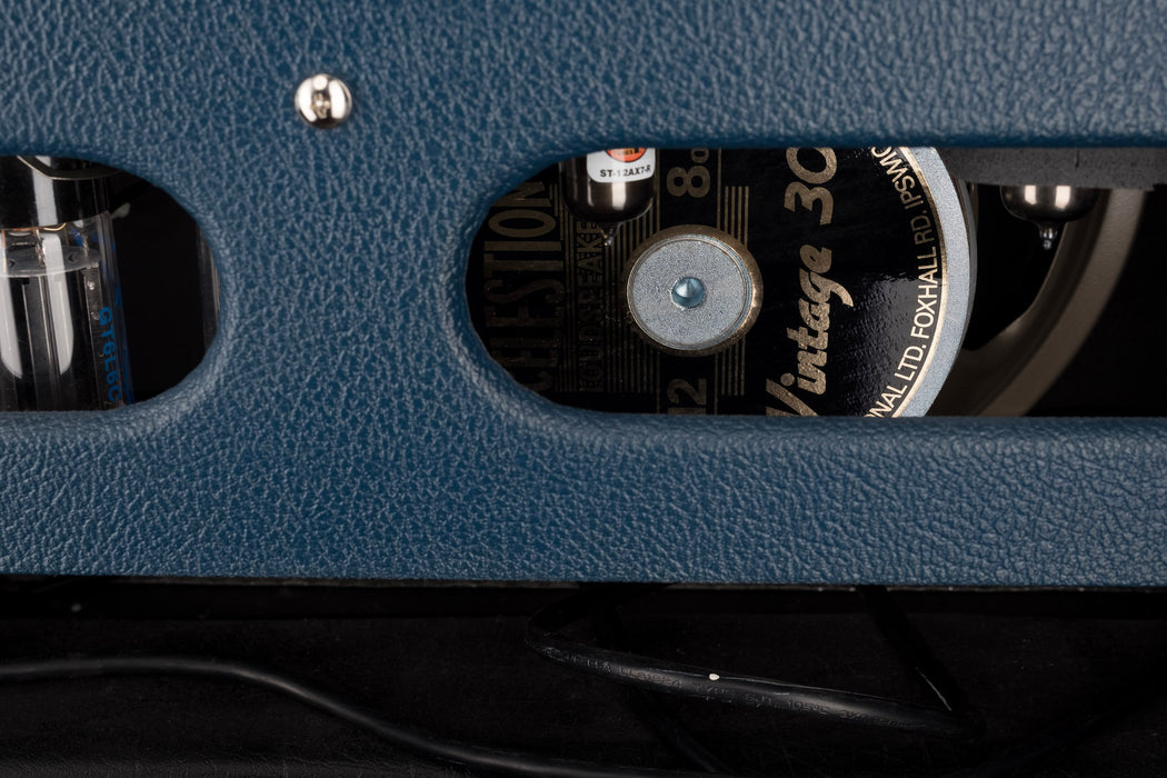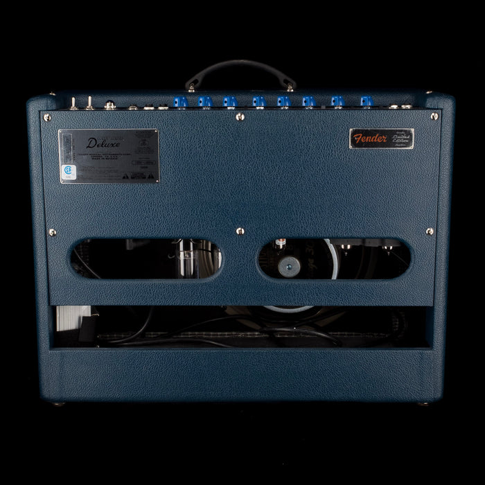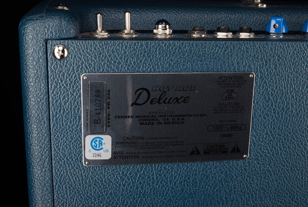 Here's a nearly perfect condition of a super cool Limited Edition Hot Rod Deluxe - built it 2012, the previous owner barely played it and never took it anywhere. Fender was doing a lot of small run versions of their Hot Rod Series amps at the time, each in various colors and with speaker upgrades. This one in particular, known as the "Bluesman" is an especially cool one - decked out in blue vinyl with blue knobs and a blue jewel light, it also features an upgraded Celestion Vintage 30 speaker.