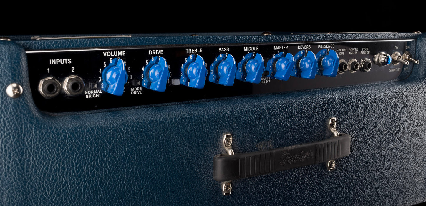 Hot Rod Deluxe™ Bluesman: Nothin’ cooler than playing “the blues” on a hot summer night and this is just the amp for it–the Hot Rod Deluxe™ Bluesman! Covered in blue vinyl with matching blue knobs, blue jewel and “silverface” grille cloth out front this baby looks like it’s ready for a night on the town. Toss in the Celestion® Vintage 30 speaker and the audience won’t miss one “blue” note!
