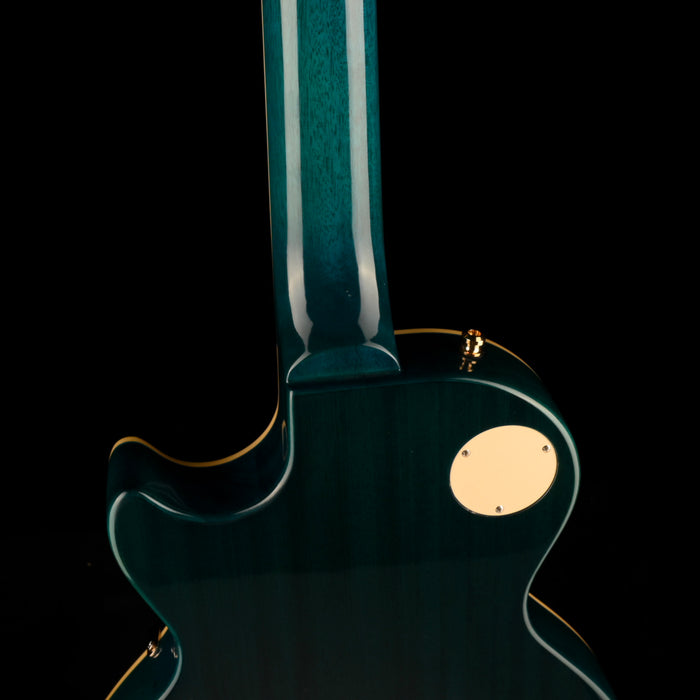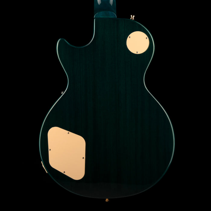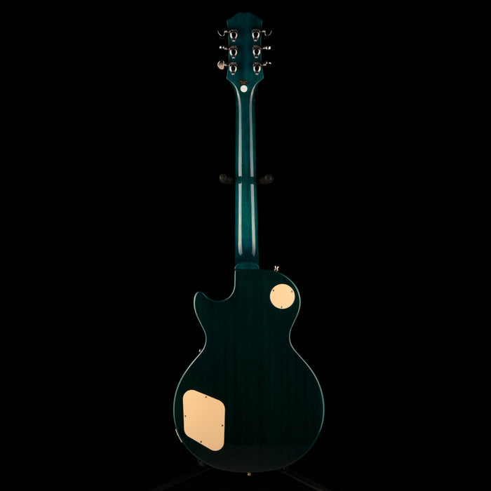 This Epiphone Les Paul Standard features a stunning AA quilt maple top finished with a luscious trans blue finish with cream binding matched with a mahogany body for the perfect pairing of tonewoods. The quilt maple top gives you the perfect snap to balance the warmth of the body. You get a mahogany neck with a comfortable SlimTaper D-profile. It comes with its pau ferro fingerboard with 22 medium jumbo frets and a 1.693" nut width, and 24.75" scale, which all creates an extremely comfortable feel for whatever style of playing. you that provides fast, easy playability.