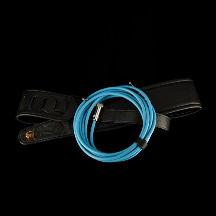 The guitar has been customized with an aftermarket set of knobs and bullet switch tip. A gig bag is included. Inside of it you'll find a nice strap and cable.