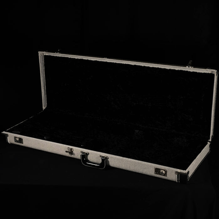 It includes a Fender G&G hard black & white tweed case, and a complimentary set up.