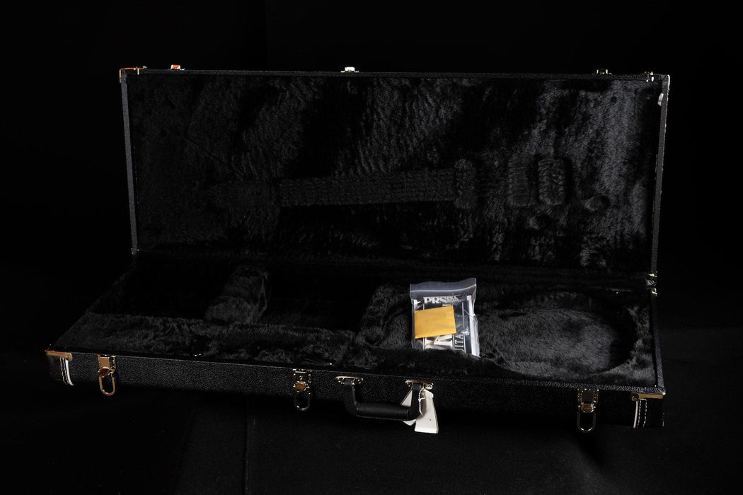 PRS 408 pickups were designed to extend the guitar’s tonal spectrum by narrowing the field of the bass pickup to increase its focus and widening the field of the treble pickup to increase its sound field (hence their asymmetric appearance). This pickup configuration (comprised of four coils and offering eight sounds) stems back to Paul’s experimentation on the Sorcerer’s Apprentice guitars in the early 1980’s. Thanks to the simple but versatile switching system featuring mini-toggle switches that provide numerous combinations of humbucking and singlecoil tones, the 408 provides stunning articulation and musical clarity. Includes hardshell case.