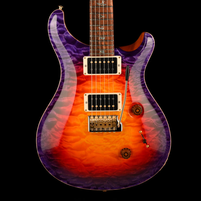 The Quilted Maple top is something you don't see that often, as it's only available at certain times. We had good timing with this one - it's an upgrade that is well one. We chose the finish to be Indian Ocean Sunset Glow. This design has an interesting backstory: years ago, a Private Stock customer was in India, took a photo of a sunset, and asked if PRS would be able to recreate the look on a guitar. The end result is a truly beautiful finish, especially on Quilted Maple. We chose to have a matching headstock, capping off the design in a wonderful way.