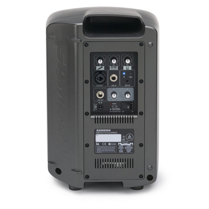 Samson's Expedition Express Rechargeable Portable PA is packed with incredible features, including Bluetooth connectivity and a built-in 3-channel mixer. It also comes complete with a wired handheld dynamic microphone for delivering impromptu performances and professional presentations in any environment. Such versatility, combined with clean, crisp audio, makes the Expedition Express an all-in-one solution for classrooms, conferences, tour groups, parties, as well as a variety of outdoor applications.