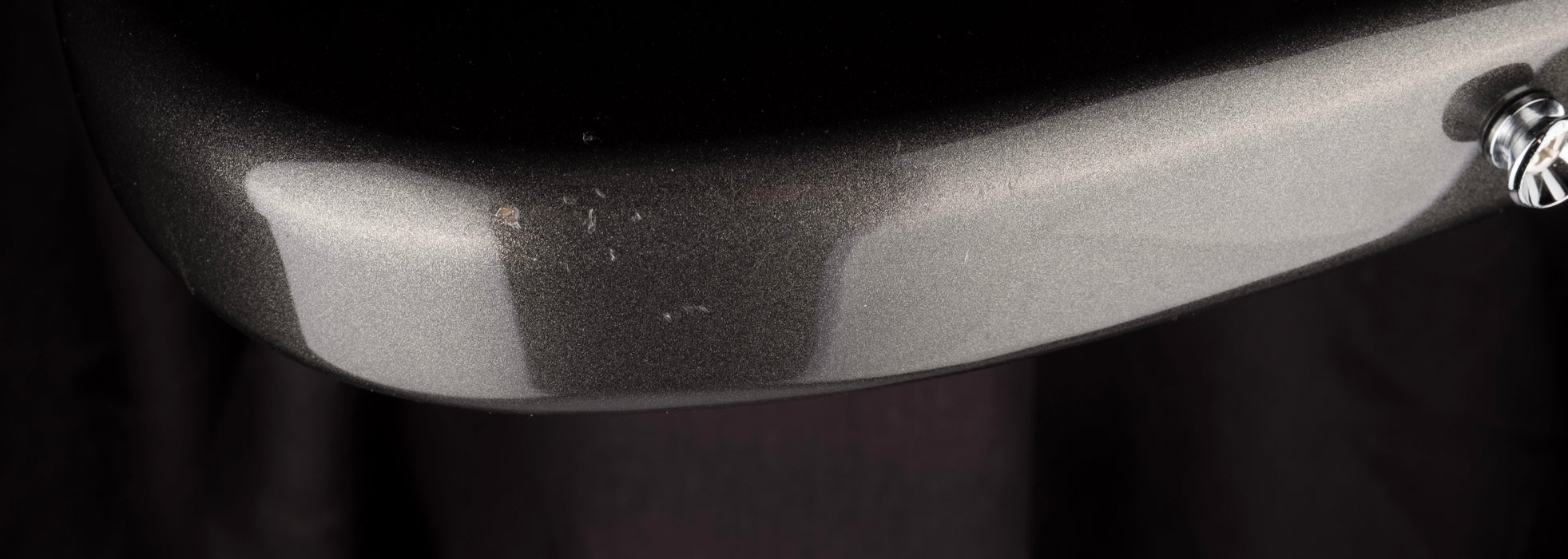 Here is a new Affinity Jaguar Bass in the ultra cool color of Charcoal Frost Metallic, that has just a slight bit of damage on it. On the bottom of the body, there are some scratches and dings. There's nothing else wrong with it, just a bit shop worn....and due to that, we are selling it as a B-stock piece.