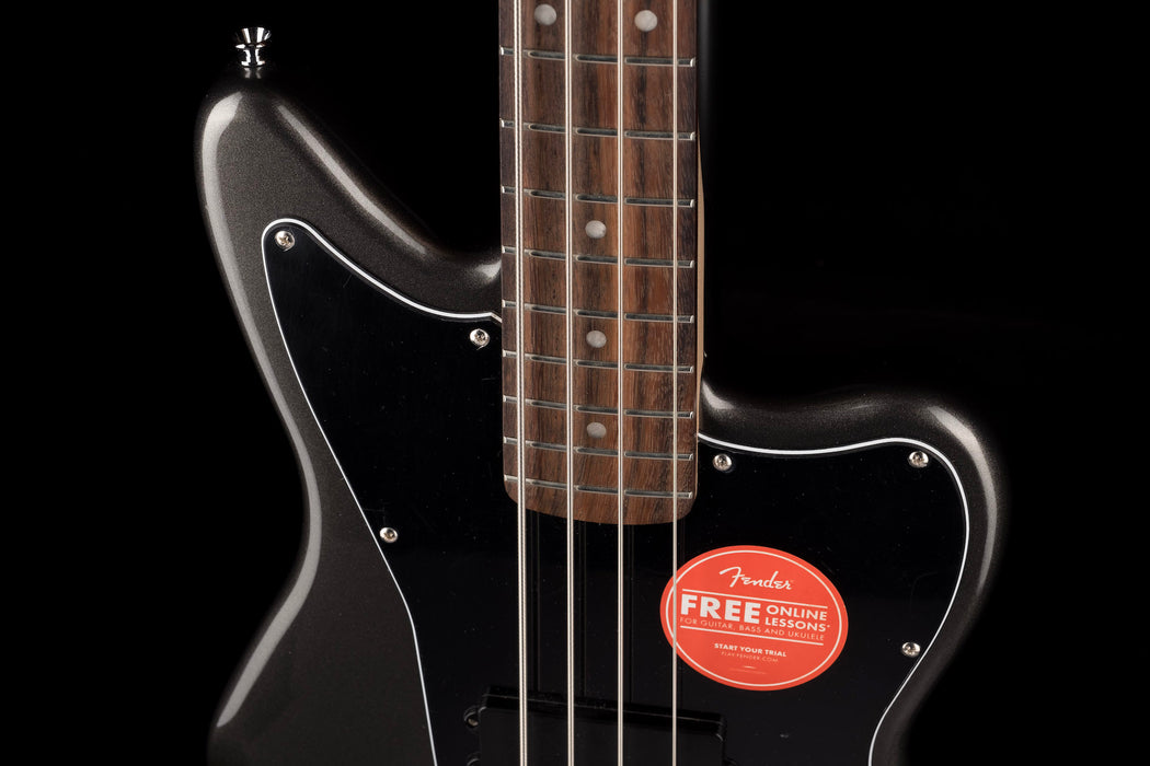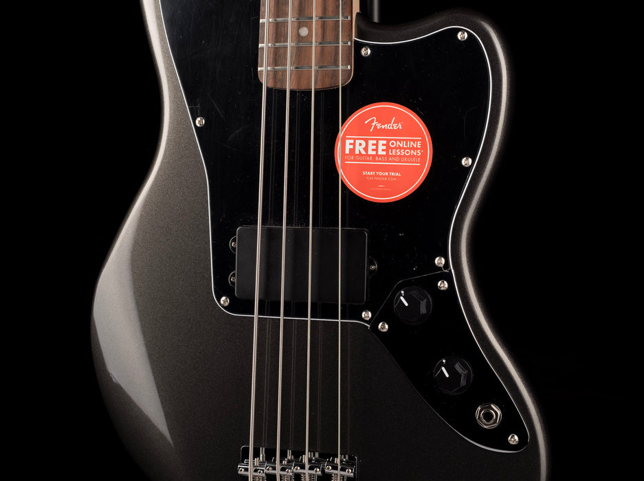 Model Name: Affinity Series™ Jaguar® Bass H, Laurel Fingerboard, Black Pickguard, Charcoal Frost Metallic