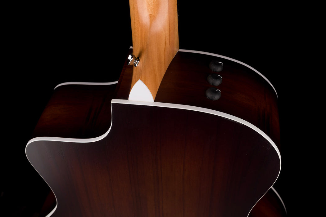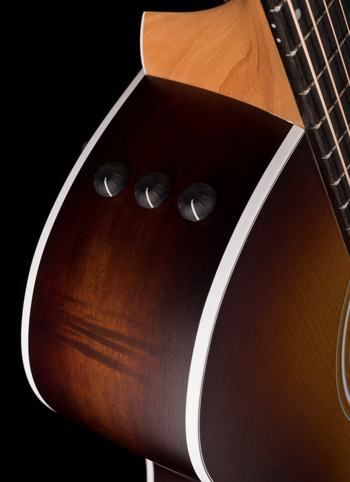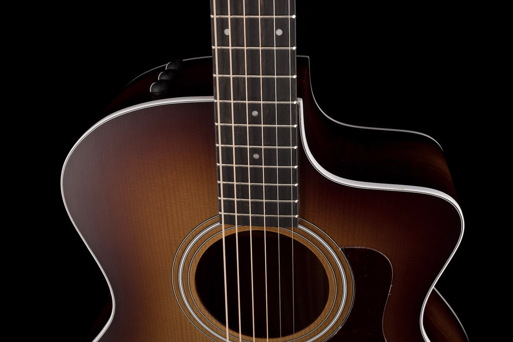 This 200 Series Grand Auditorium combines the seamless feel of a slender neck and comfortable body curves with the aesthetic and musical sparkle of Hawaiian koa. Made with back and sides of layered koa and topped with solid Sitka spruce, the 214ce-K SB serves up a pleasing mix of top-end clarity and low-range warmth for a vibrant, expressive tone. A delicate balance of power and soft-touch responsiveness will impress players looking for an adaptable guitar that performs across styles and genres, making it an ideal choice for live performance, recording and songwriting sessions. This model comes detailed with an alluring matte sunburst finish that wraps around the top, back and sides, along with 4mm dot fretboard inlays, a Venetian cutaway, crisp white binding, a three-ring rosette and faux tortoiseshell pickguard. It ships with ES2 electronics in a lightweight, padded gig bag.