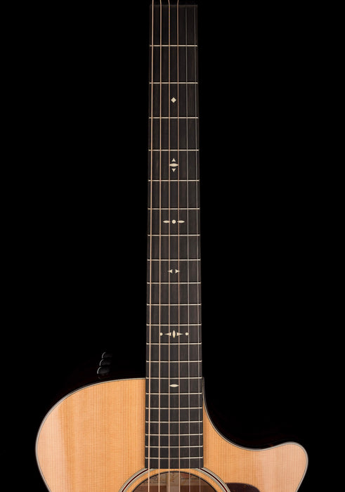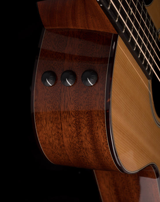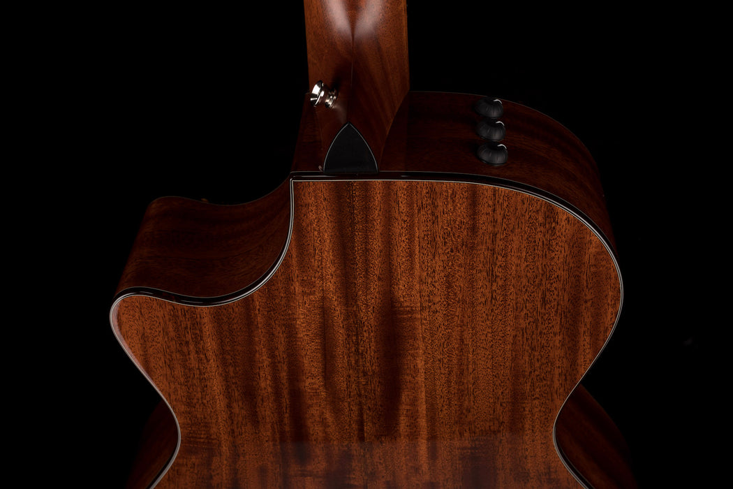 This edition features a move to V-Class bracing tailored for the Grand Concert shape, which pushes a surprising amount of volume from this small-bodied guitar, coupled with notes that sustain gorgeously. The new bracing design proves a perfect match for a solid cedar top, opening up greater headroom while maintaining cedar’s natural touch sensitivity and warmth. An elegant cutaway opens up the fretboard, while Taylor’s ES2 pickup delivers organic amplified acoustic tone.