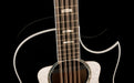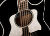 Distinctive aesthetic details include white binding that outlines the body, fretboard and peghead, a white pearloid double pickguard (another nod to traditional bajo quintos) with a matching truss rod cover, a single-ring green abalone rosette with black and white purfling, mother-of-pearl Mission inlays outlined in grained ivoroid, ebony bridge pins with green abalone dots, and gold Taylor mini tuners.