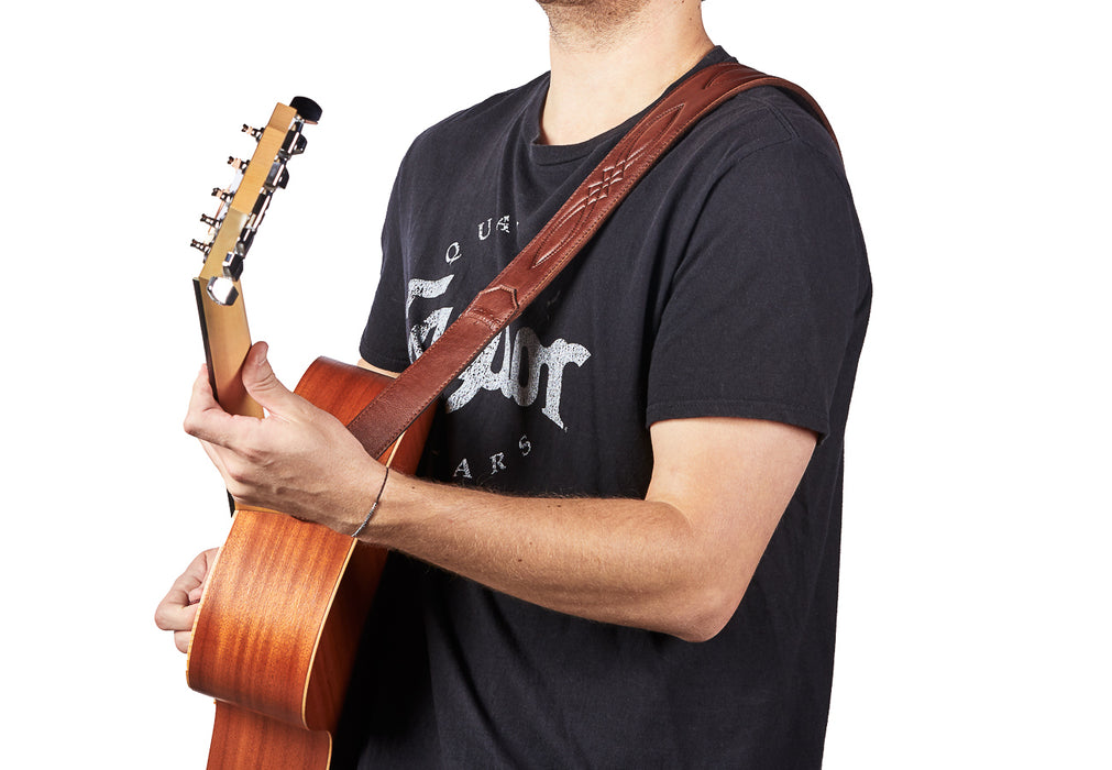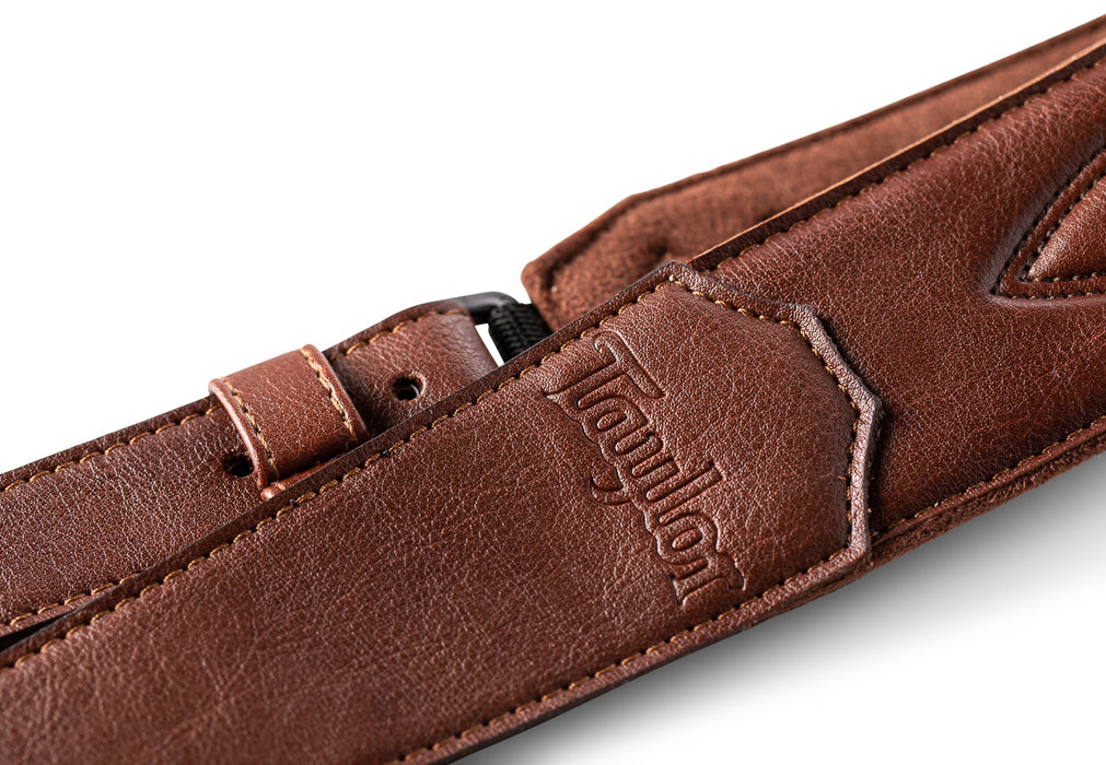 The Taylor 2" Vegan Leather Guitar Strap is 100% free of animal products. Featuring a slick genuine leather look and an embossed Taylor logo, this 2"-wide strap provides comfort and support without restricting your movement while you play. Taylor Vegan straps are available in chocolate brown and medium brown. Made in the USA. Taylor Model #4201-20 WARNING: These products can expose you to chemicals including Formaldehyde, which are known to the State of California to cause cancer. For more information, go to www.P65Warnings.ca.gov.