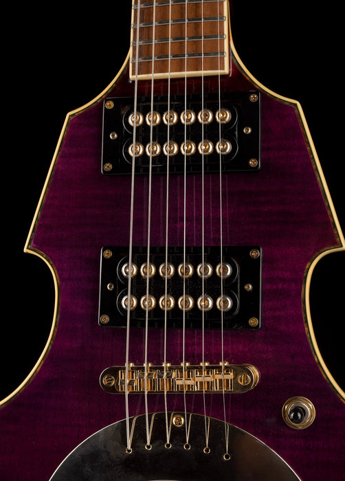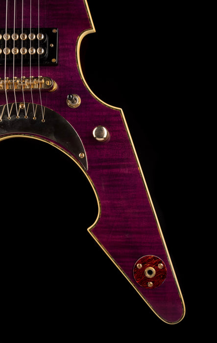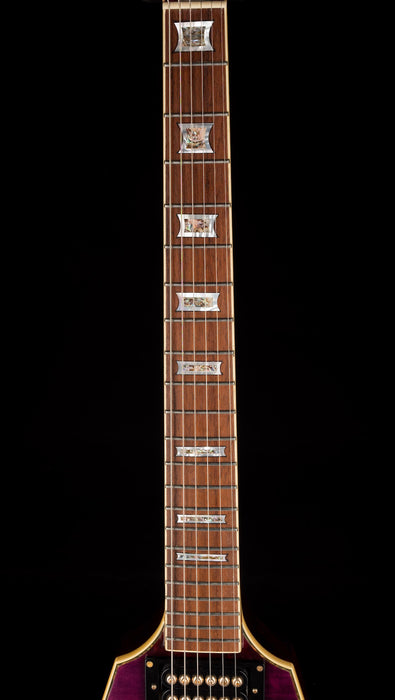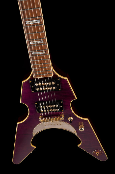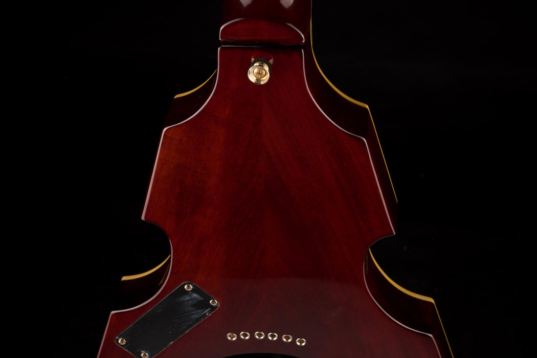 This is a V-shaped guitar with full access to any note on the fingerboard with ease. The two of you can soar to new heights of playing! It's got humbuckers, time to fly!