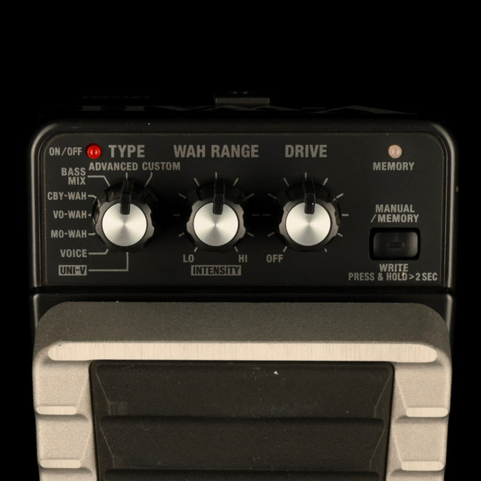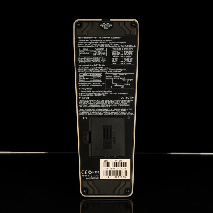 Want a wah with a boatload of options, stored memory options, and even drive?! Here's this Boss PW-10 V-Wah Pedal! This is a programmable wah pedal that gives you a variety of wah types with overdrive/distortion. Use the type knob to select your wah type, and you have a variety of types such as a Crybaby, Vox, and custom wah type. You have a knob to control the intensity of the wah so you can between a subtle or extreme sweep. There is a knob to control the level of drive to go from clean, overdriven, to fully distorted. In addition there is a memory button to store and recall your favorite wah settings. This pedal is in good condition and is ready for your guitar and feet!