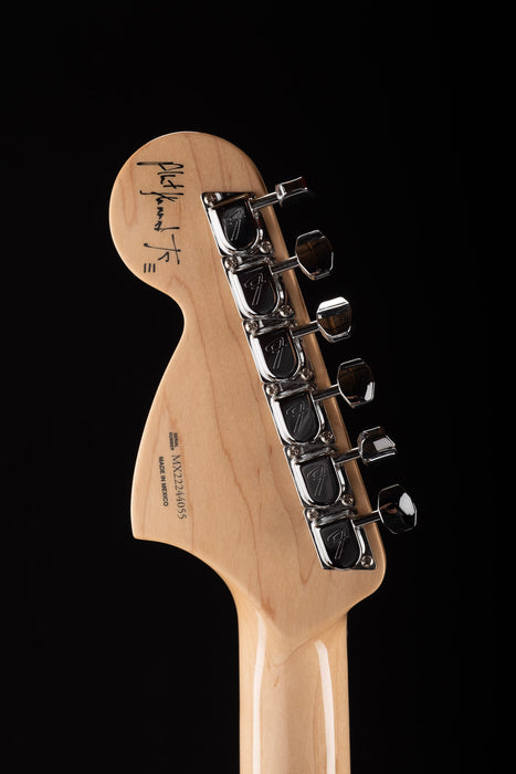 As a unique touch Fender replicated Hammond’s customized pickups switching: pickup switch position four activates the neck and bridge pickups in tandem, while positions one and three are reversed from the traditional layout. Hammond’s signature graces the back of the large ‘70s-style headstock, while other ‘70s-inspired features include bullet truss rod nut, 3-bolt “F”-stamped neck plate with period-correct Micro-Tilt adjustment and a ‘70s-era logo.