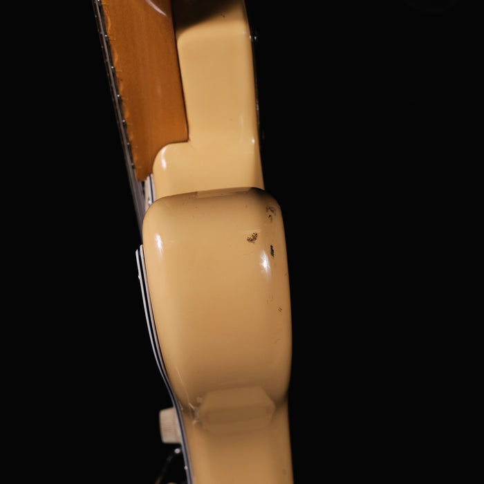 Up for sale is a beautiful scalloped neck Fender Japan Signature Stratocaster form everyones favorite Swedish rock shred guy, the one and only Yngwie J. Malmsteen. Fender Yngwie Malmsteen Signature Strat, Crafted in Japan 1993-4. There's not many more iconic (and polarizing!) shred-masters than Sweden's legendary Yngwie Malmsteen. This 7.8 ponder features a yellow-white finish and a scalloped fretboard with a 1.574 nut width. The scalloped board on this opens up some amazing possibilities: you can bend notes more cleanly and further without issues, easily bending two whole tones; plus the possibility for vibrato is greatly increased..The pickups balance beautifully; there's a crispy-clear attack and definition that's easy to enjoy and really lets the subtleties of your playing shine through. The tone has body and a low-end to the smooth midrange ... this really does sound great. There's a few miles on the clock here; the checking lines along the body look especially cool. These aren't getting any more common, and they're certainly not getting any less collectable or any less fun to play!!