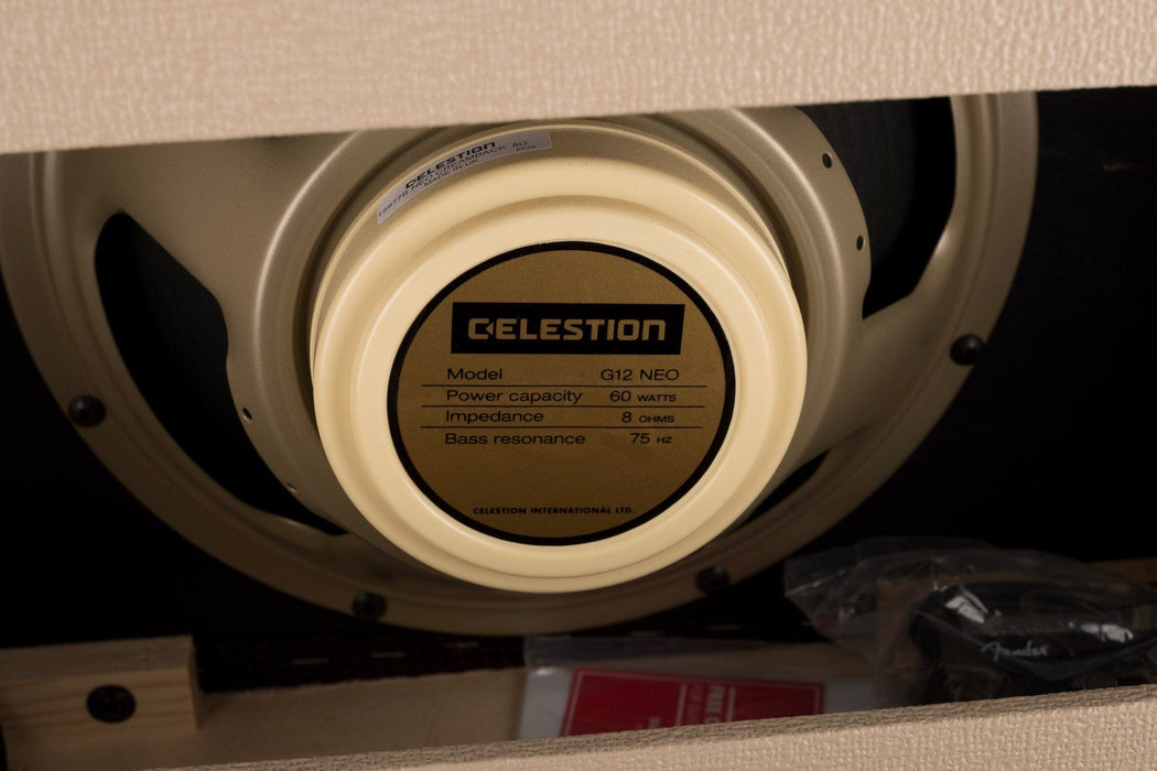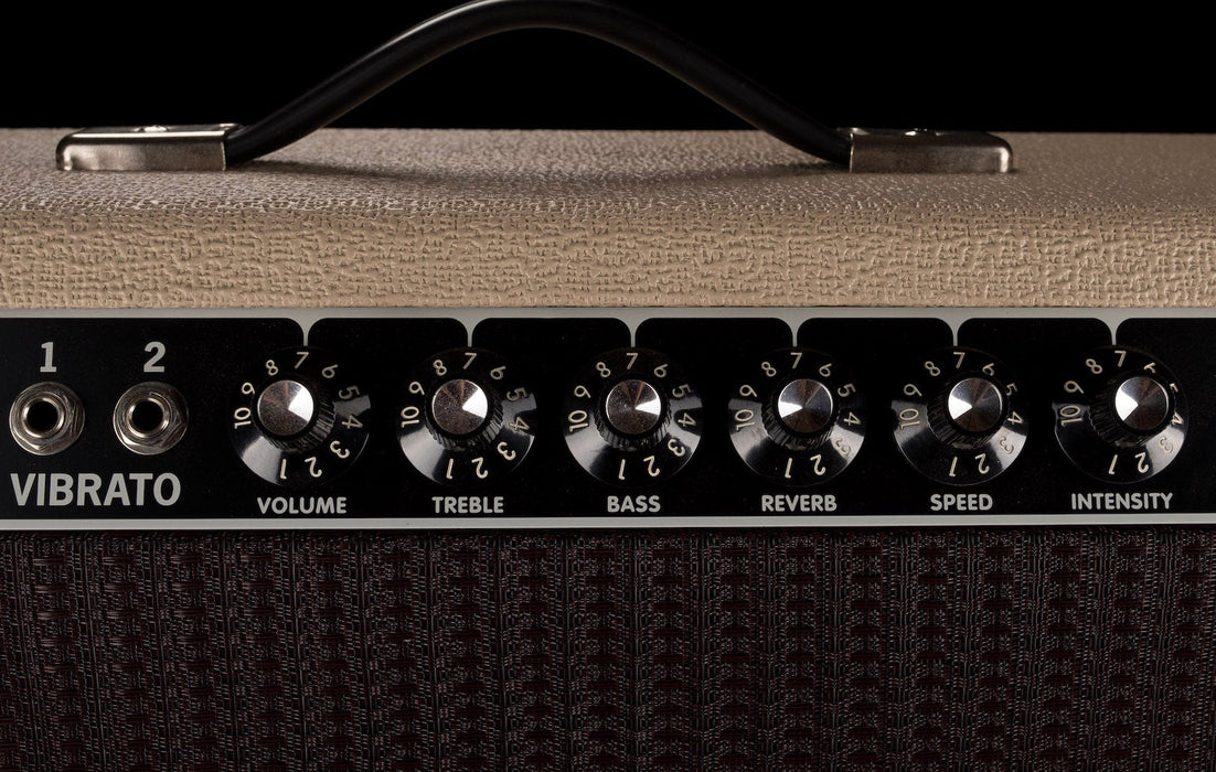 A high-performance 100-watt digital power amp is used to achieve the headroom and dynamic range of a real vintage Deluxe tube amp. The resonant pine cabinet is paired with a single Celestion® NEO Creamback speaker for a more distinctive rock 'n' roll flavor. The result is tubeless Deluxe Reverb tone, volume and dynamics virtually indistinguishable from the all-tube original. The amp model has been modified to remove the virtual bright cap on the Vibrato channel, which gives modern players greater tonal flexibility when using distortion and overdrive pedals. Additionally, the reverb control now provides easier fine tuning at lower settings. Perhaps most notably, even with all these features and more, the Tone Master Deluxe Reverb is in fact about only half the weight of an all-tube Deluxe.