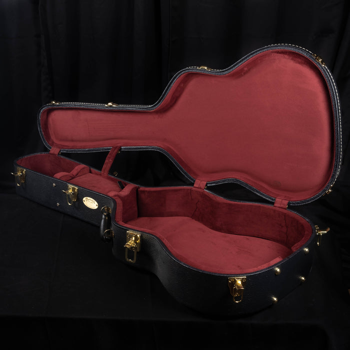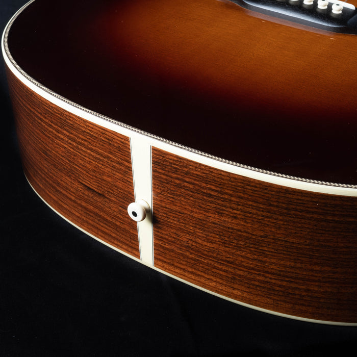 The sides and back of this instrument are constructed from solid East Indian rosewood. The top is book-matched from select quartersawn Sitka spruce, and the rosette, as well as the perimeter of the sound-boards, are inlaid with finely patterned herringbone wood marquetry. The body is bound with grained ivoroid. A genuine ebony fingerboard features the pre-war Style 28 snowflake pattern in a blond pearl, and Eric Clapton's signature is inlaid in mother-of-pearl between the 19th and 20th frets. Each 00028BEC bears an interior label, individually numbered in sequence.Includes hard shell case.