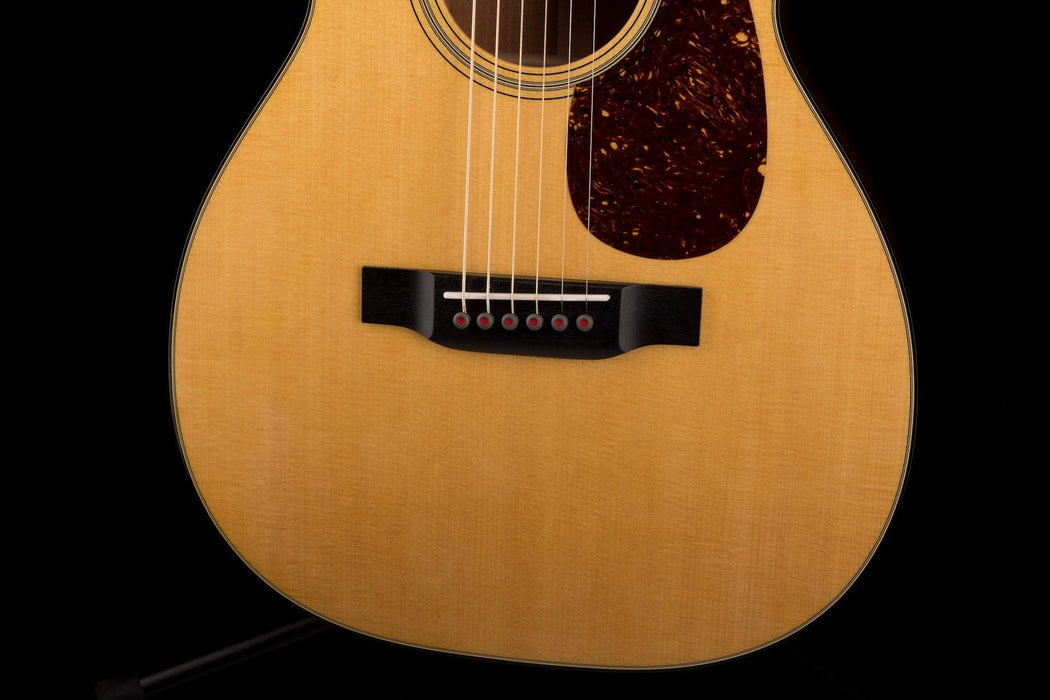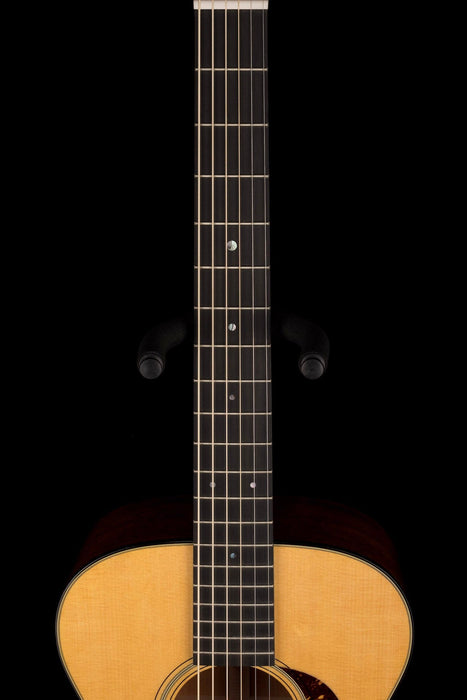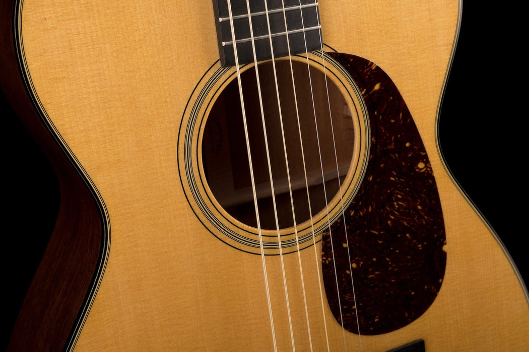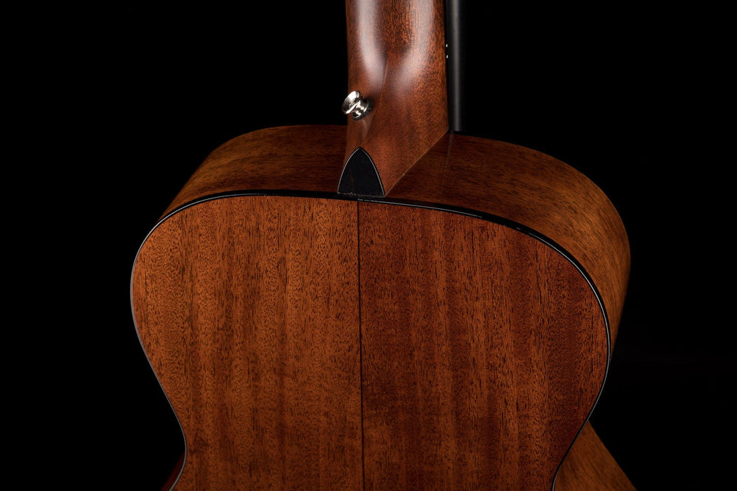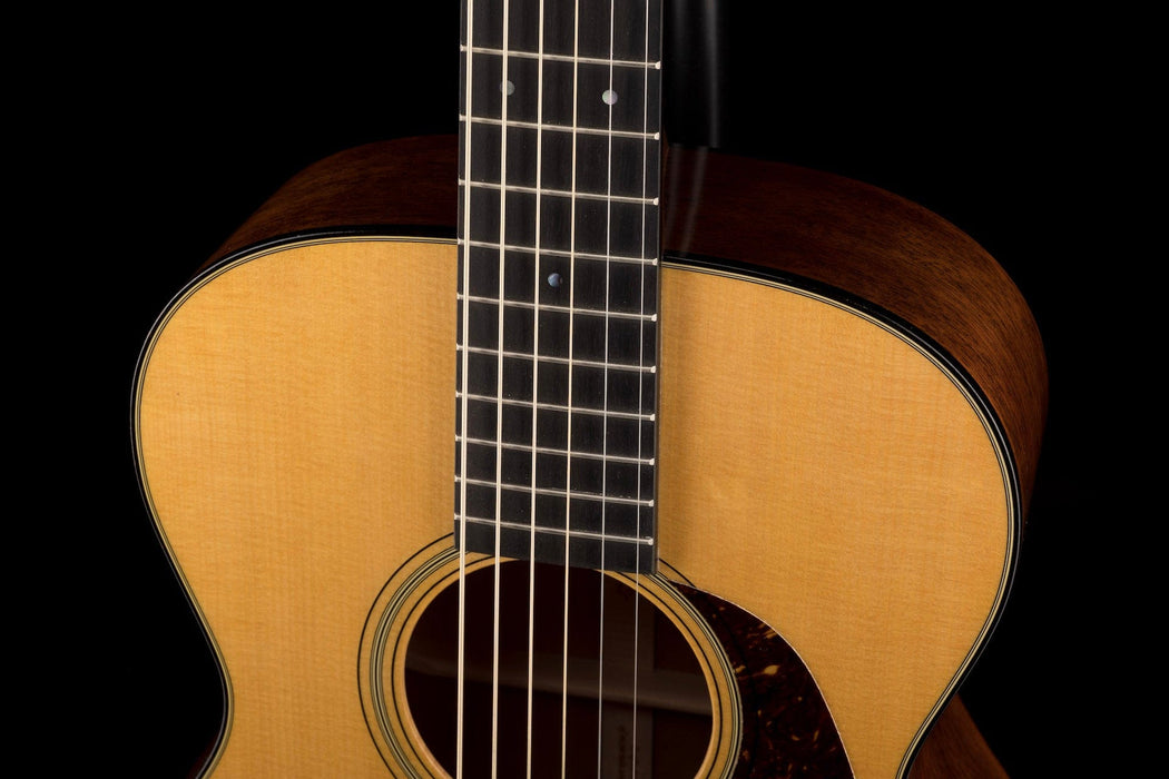 The 0-18 has a scallop-braced Sitka spruce top with mahogany back and sides that serve as the foundation for this concert sized model. The combination of a short expressive 24.9” scale with a modified low oval neck shape and the high performance parallel taper allows for easy action and fast playability. Open geared nickel tuners with phosphor bronze strings and an ebony fingerboard and bridge complete the look of this classic parlor guitar.
