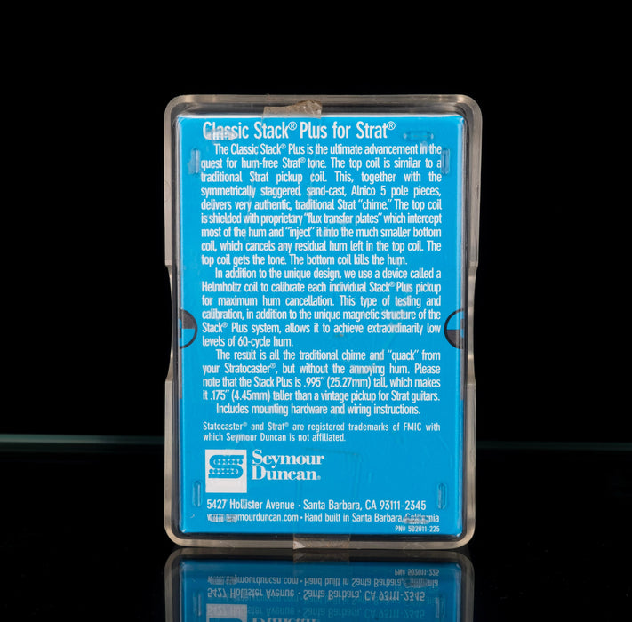 Hand built in Santa Barbara, CA, the Classic Stack Plus Stratocaster pickups use hand ground alnico 5 rod magnets and comes with a splittable 3-conductor lead wire to give you access to true single coil operation. Each pickup wax potted for squeal free performance.