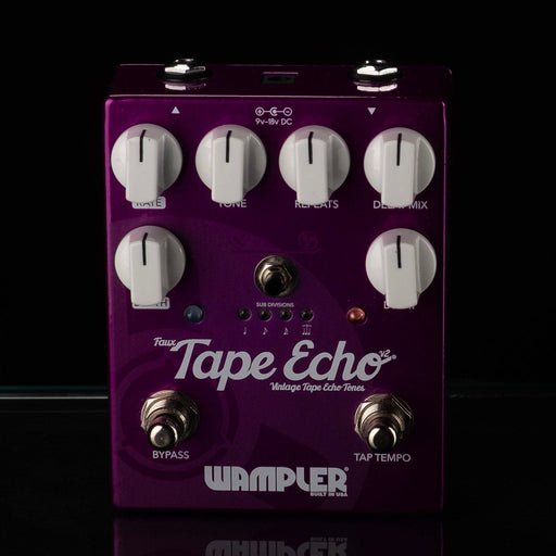 The Wampler Faux Tape Echo is a great delay with plenty of options and great tone. You can dial in rhythms at ¼, 1/8, dotted 1/8 and triplet based on your tap tempo. With its hybrid design (completely pure analog dry path with the digital delay layered on top) approach, you get the best of both worlds. You get the note clarity, much lower noise, and longer delay times from digital delays. You also get the lovely warmth and little exquisite touches that are usually reserved for analog delays. Nearly every part of the pedal, all of its major functions, are analog. Every aspect of the modulation that gives the Faux Tape Echo pedal a unique function and tone and makes it desirable for people who want their delay tone to sound as good as tape delay units but without all the maintenance, supplies, and hassle. Your all-important fundamental dry tone is 100% analog, too.
