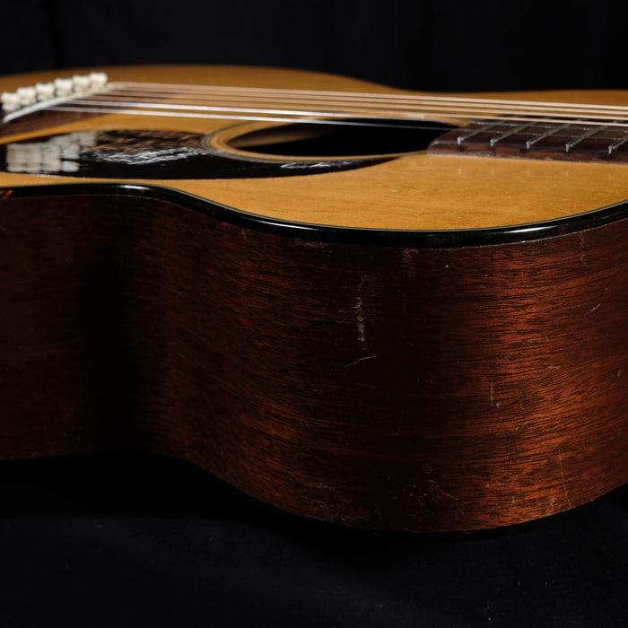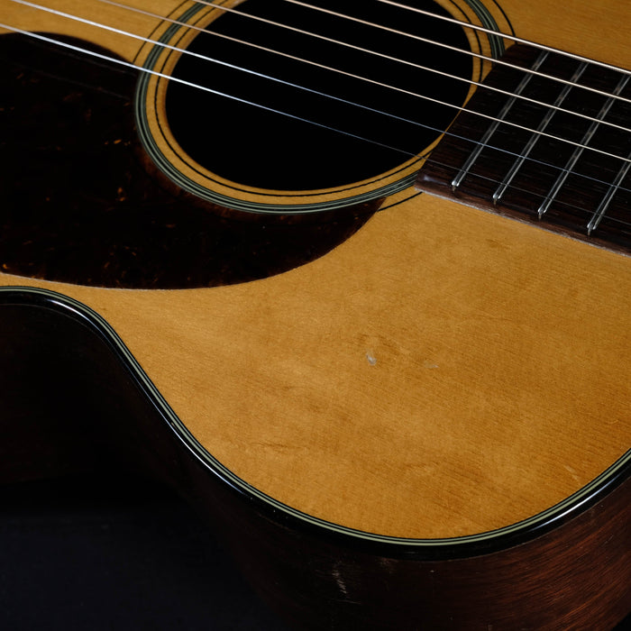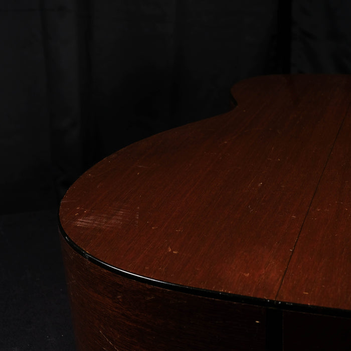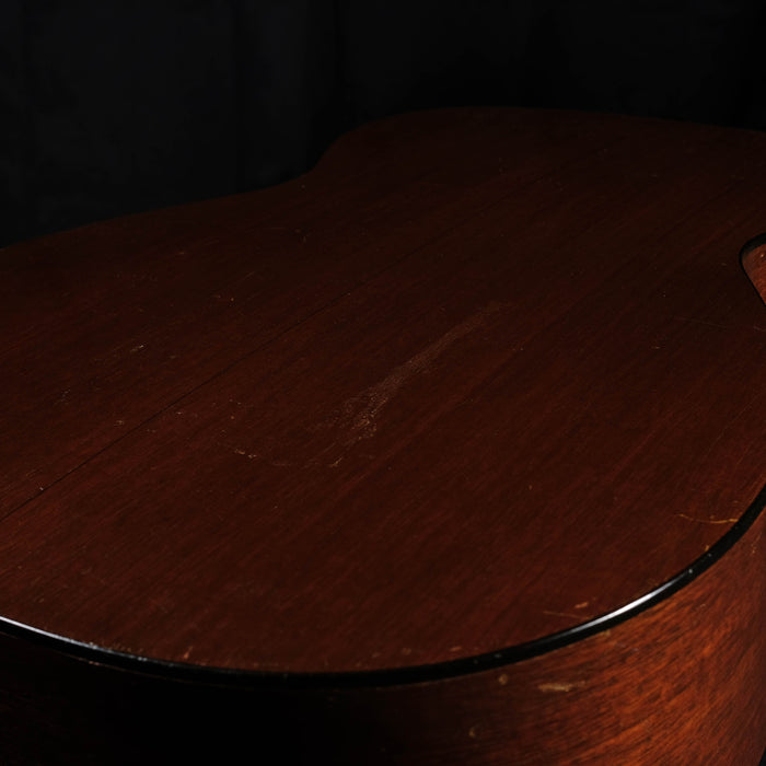 This vintage 1947 Martin 0-18 is an absolute stellar sounding instrument. The sound of this Martin is just stunning. One of the best small bodied vintage guitars we've ever heard. The German spruce top, with its complex harmony and extra-clearness, was only used for a limited time in the 1940s and early 1950s. The back and sides are made of high quality mahogany. It is well aged and perfectly balanced, with present mids, crystal clear highs and thumping basses (amazing what comes out of this little body). The small 0 body gives the sound a warm, round nuance and a great projection. It was, as you can see, played and loved. The playability is very good, and is an overall solid instrument. The neck was re set what looks like a very long time ago and done incredibly well. The frets are low but in very god shape with lots of life still left in them.Includes the original gator chipboard case